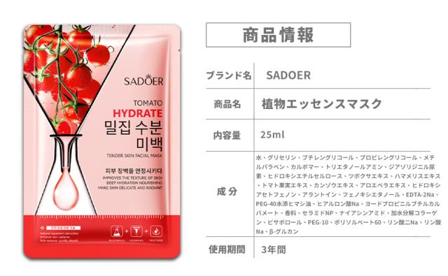 [10枚セット]天然フルーツエッセンス シートマスク 個包装、フェイスパック 大容量【トマトエッセンスアンプル】活性成分配合、 ビタミン パック、 鎮静パック、美容パック、デイリーパック、ピタッと密着、肌荒れ パック、美容マスク