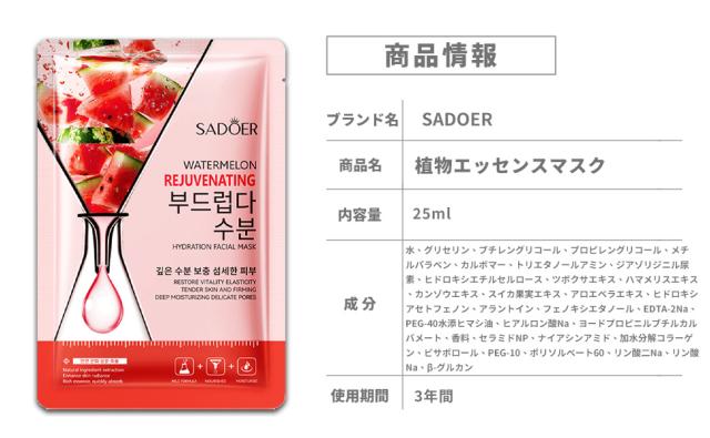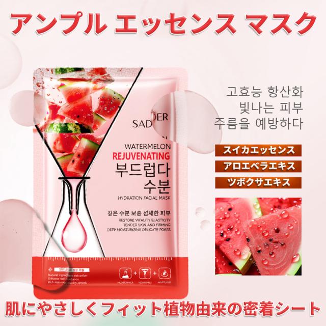 [10枚セット]天然フルーツエッセンス シートマスク 個包装、フェイスパック 大容量【スイカエッセンスアンプル】活性成分配合、鎮静パック、美容パック、デイリーパック、ピタッと密着、肌荒れ パック、美容マスク