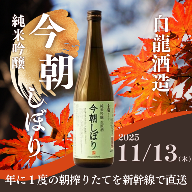 【11月13日店頭受取】 新潟県 白龍 純米吟醸生原酒 今朝しぼり720ml(白龍酒造) ※10月31日注文受付締め切り