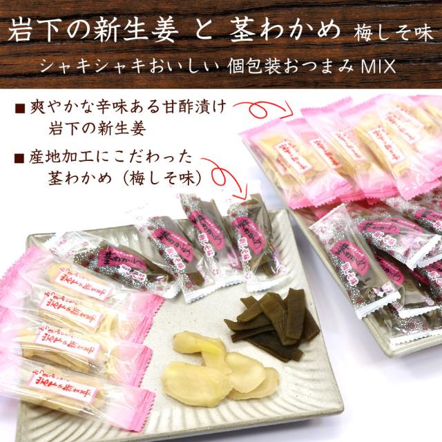 岩下の新生姜 と 茎わかめ (梅しそ味) 【2種MIX】 400g 個包装 (DL) 茎わかめ 梅 産地加工 いわしたの新生姜 おつまみ 業務用 食べ比べ メール便 送料無料