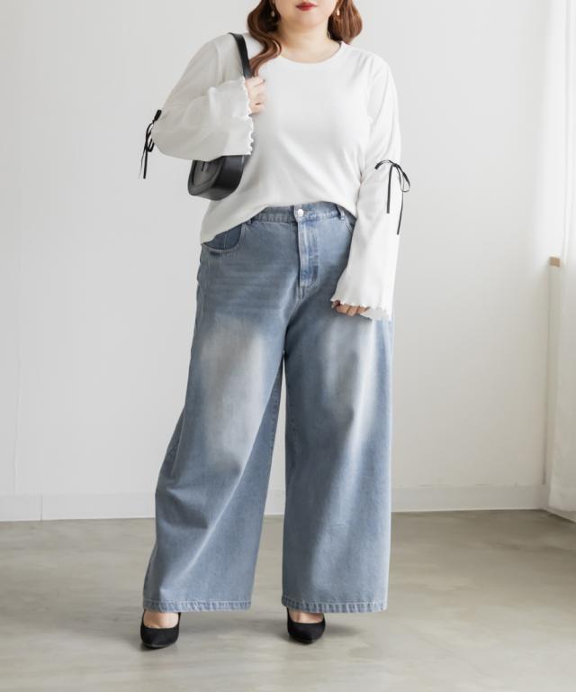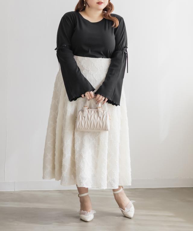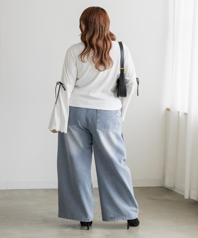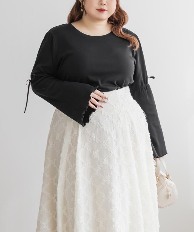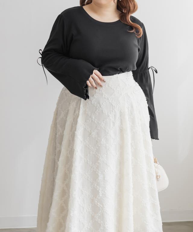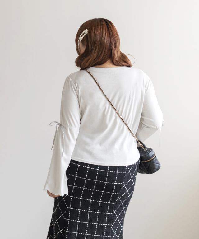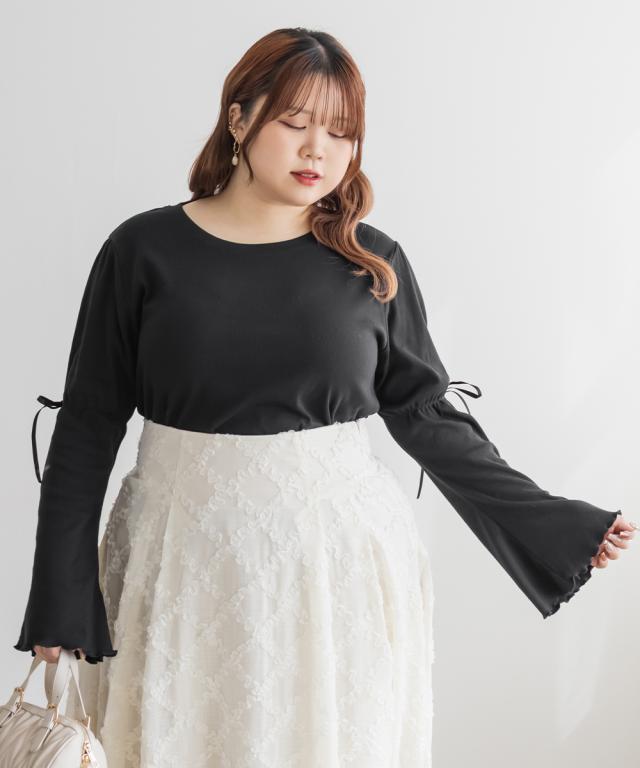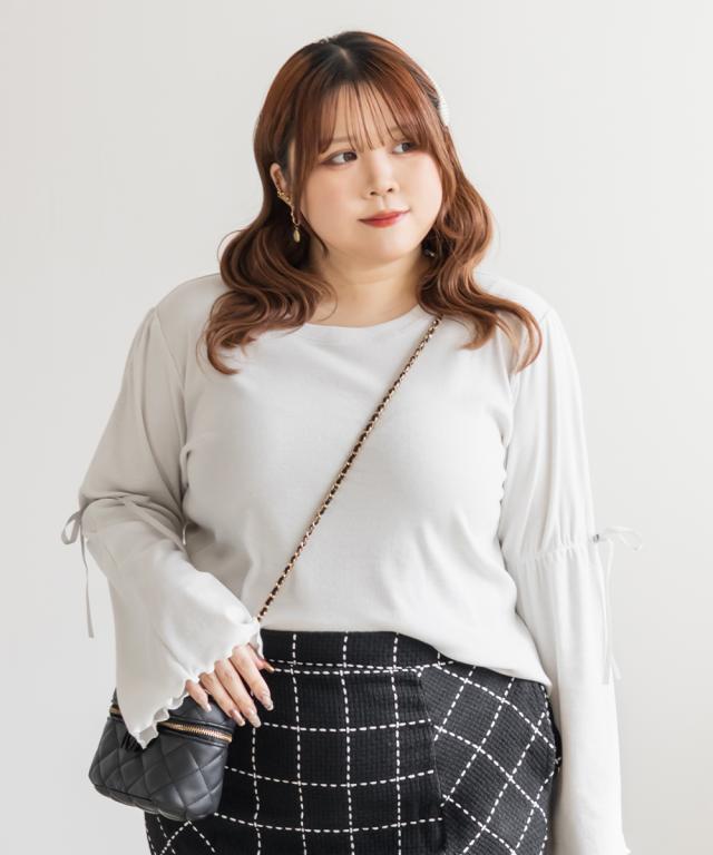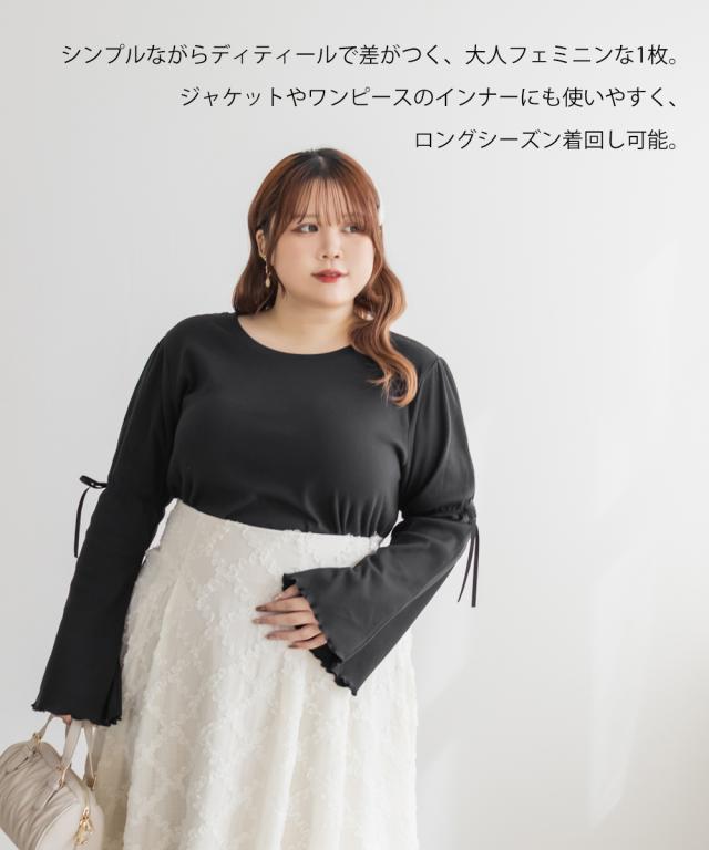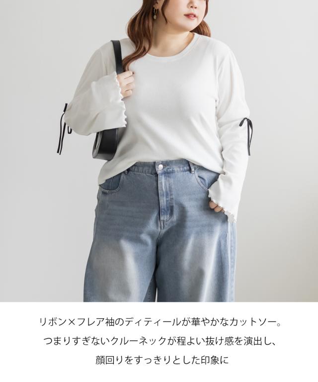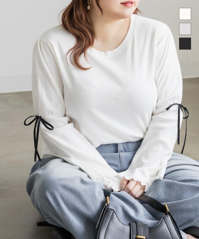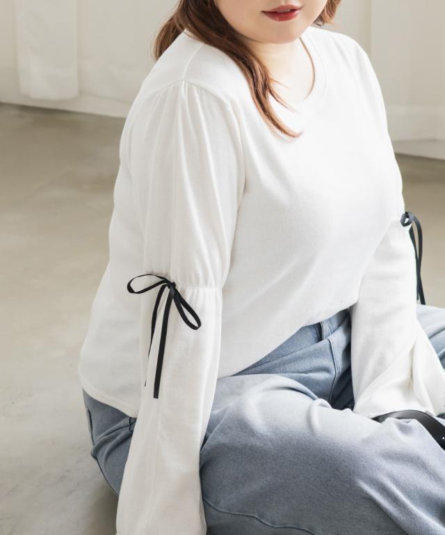 大きいサイズ/レディース/LL/3L/4L/CLETTEオリジナル袖リボンリブカットソー