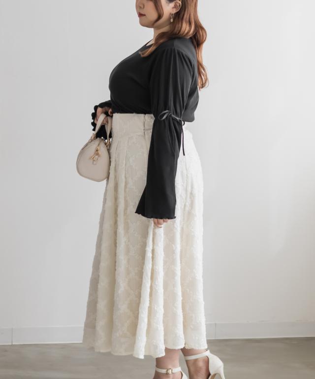| 3Lサイズを着用しました。着用感はちょうどいいです◎ 柔らかいリブ素材で肌あたりが優しく、着心地がとても良いです。 つまりすぎないクルーネックが顔まわりをすっきり見せてくれて、インナーとしてもトップスとしても活躍します。 袖口のリボンとフレア×メロー仕様のデザインが、さりげなく女性らしさをプラスしてくれるアイテムです♪ |