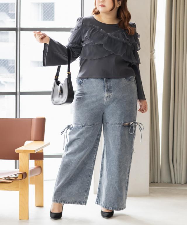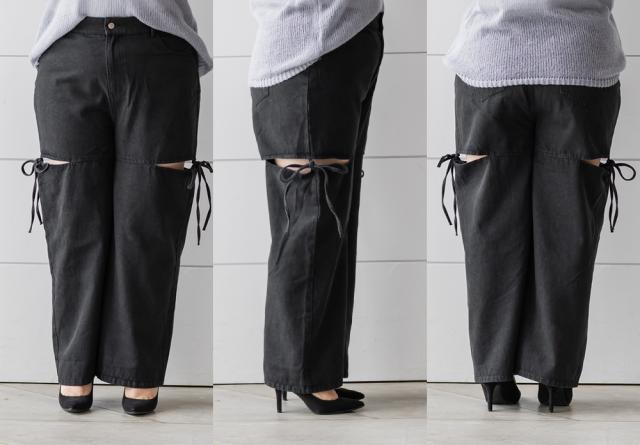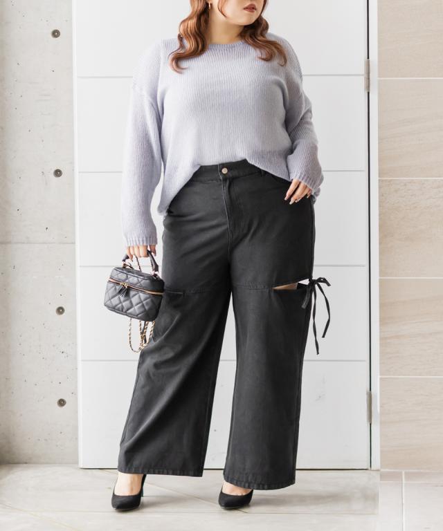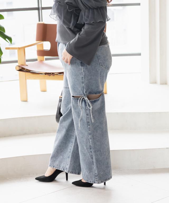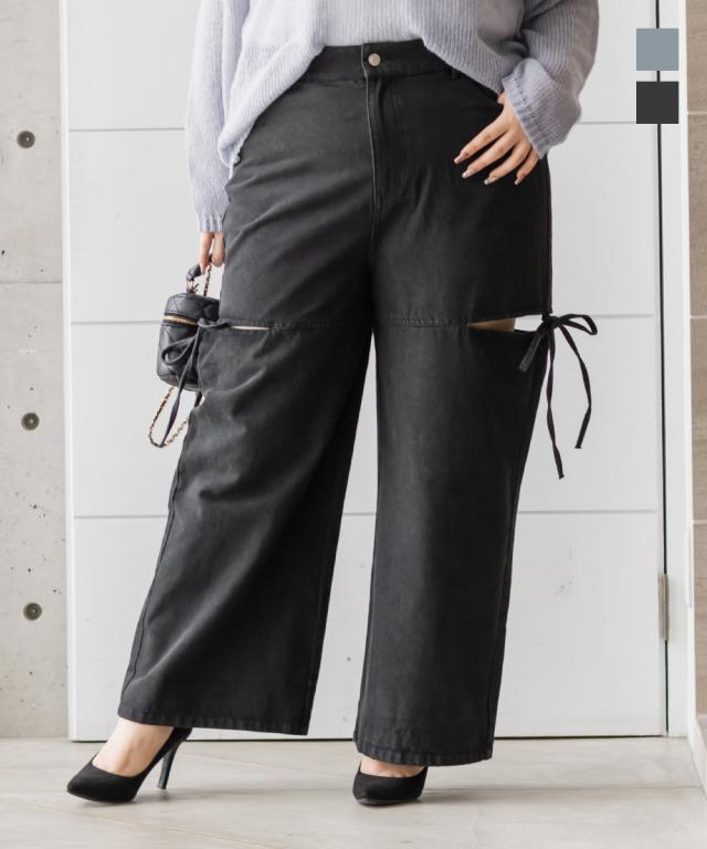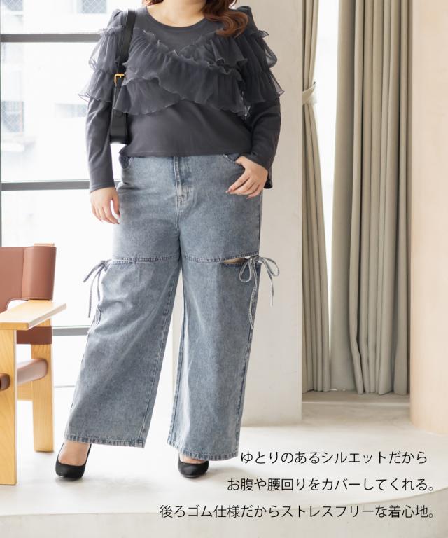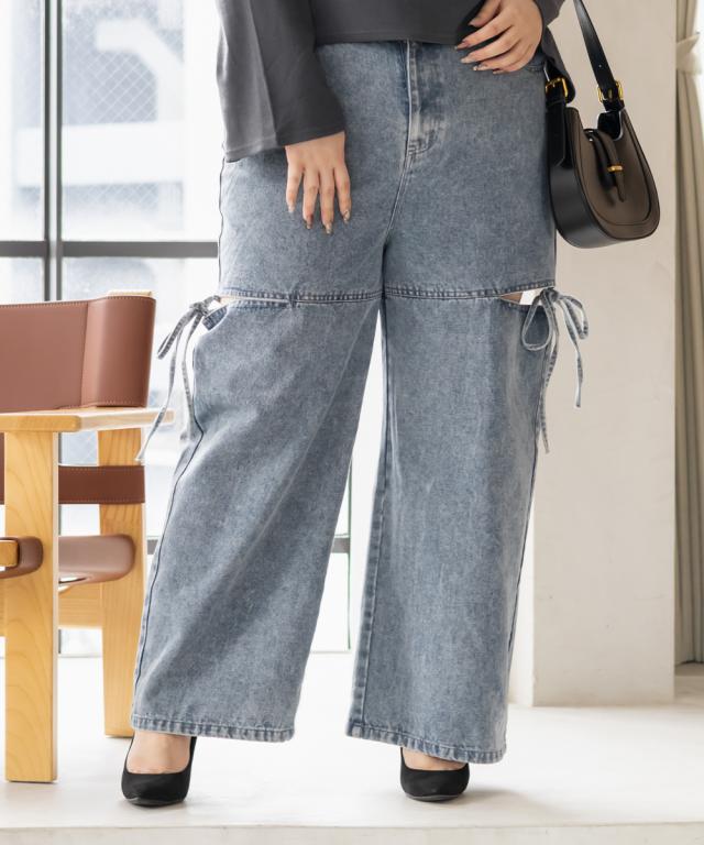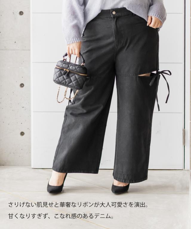 大きいサイズ/レディース/LL/3L/4L/CLETTEオリジナルスリットリボンデニムパンツ