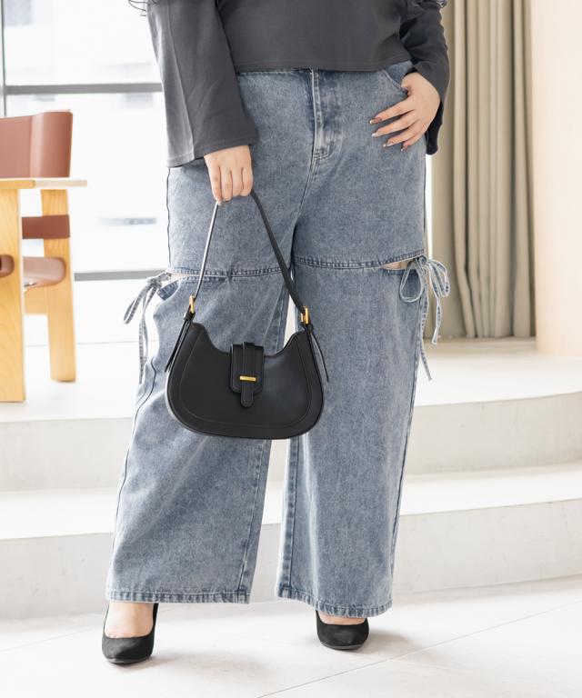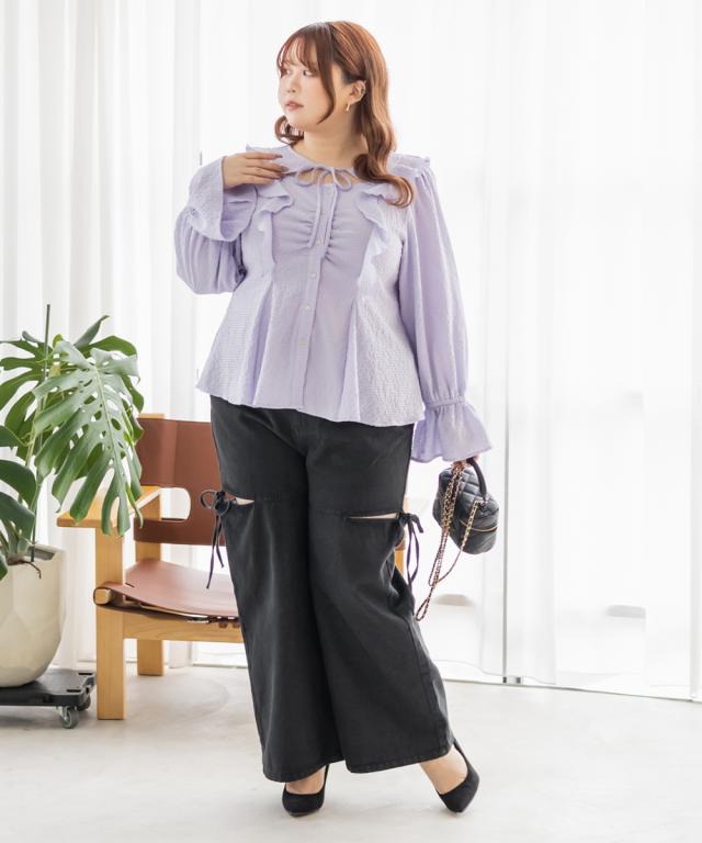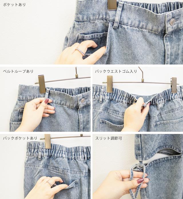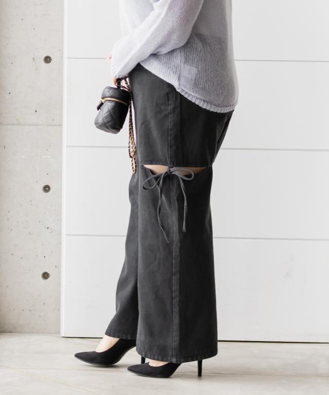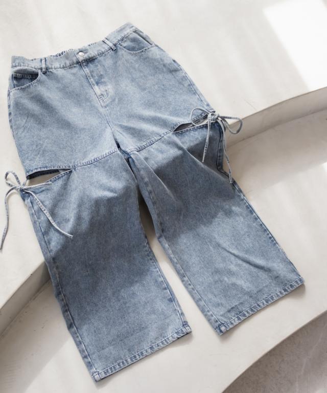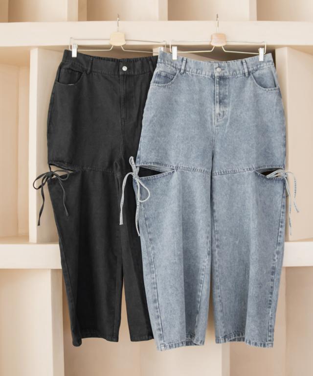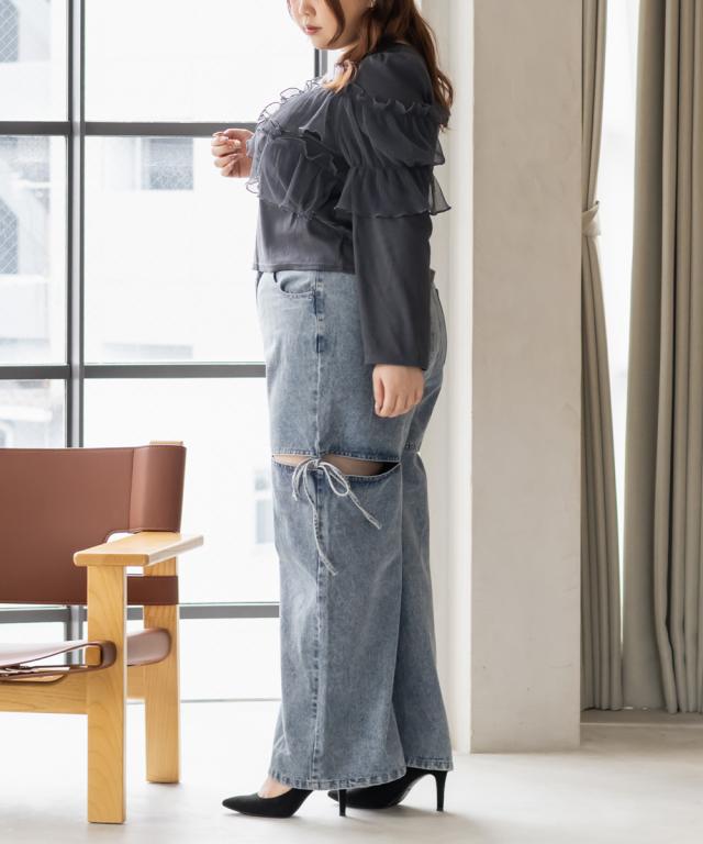 大きいサイズ/レディース/LL/3L/4L/CLETTEオリジナルスリットリボンデニムパンツ