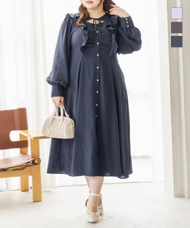 大きいサイズ/レディース/LL/3L/4L/CLETTEオリジナルデコルテリボンフリルワンピース