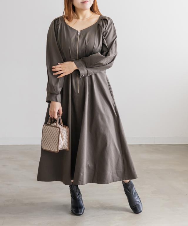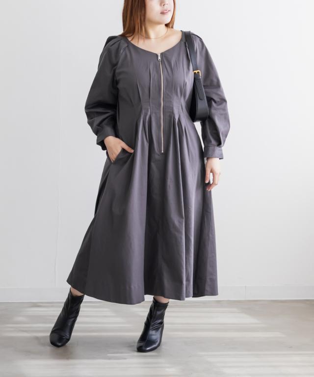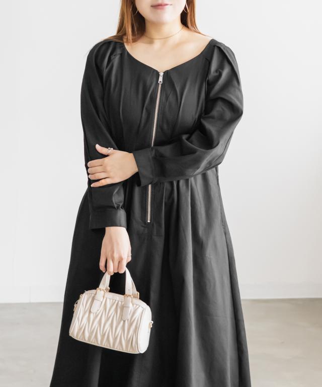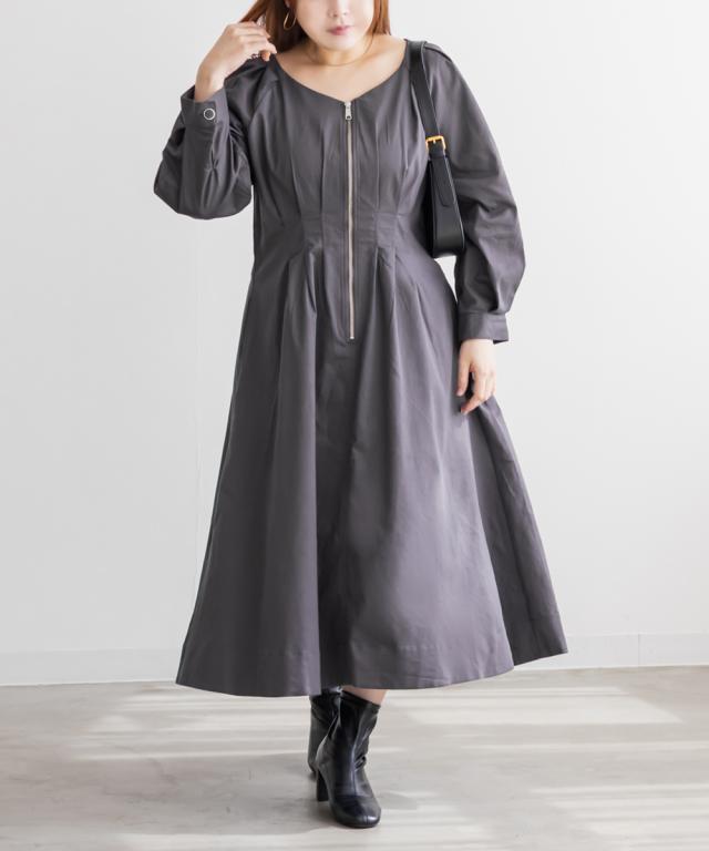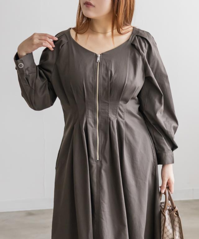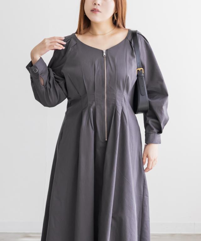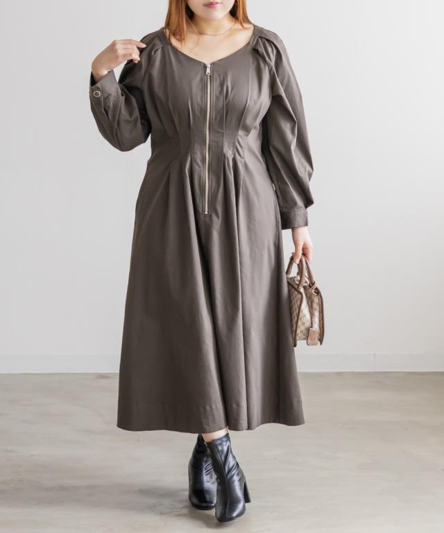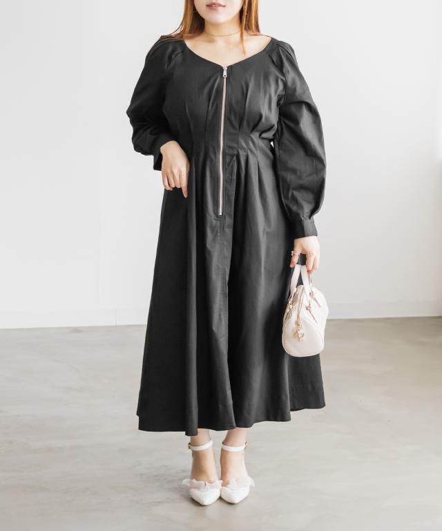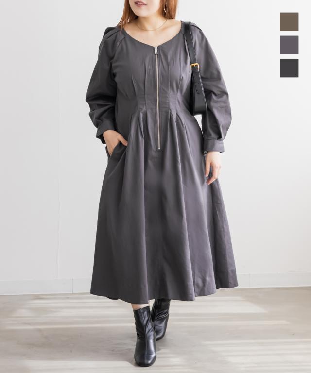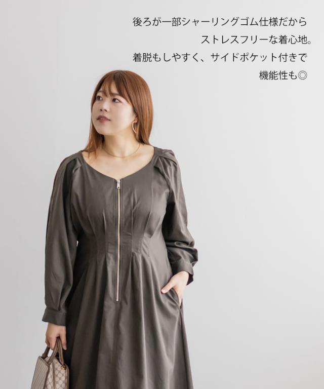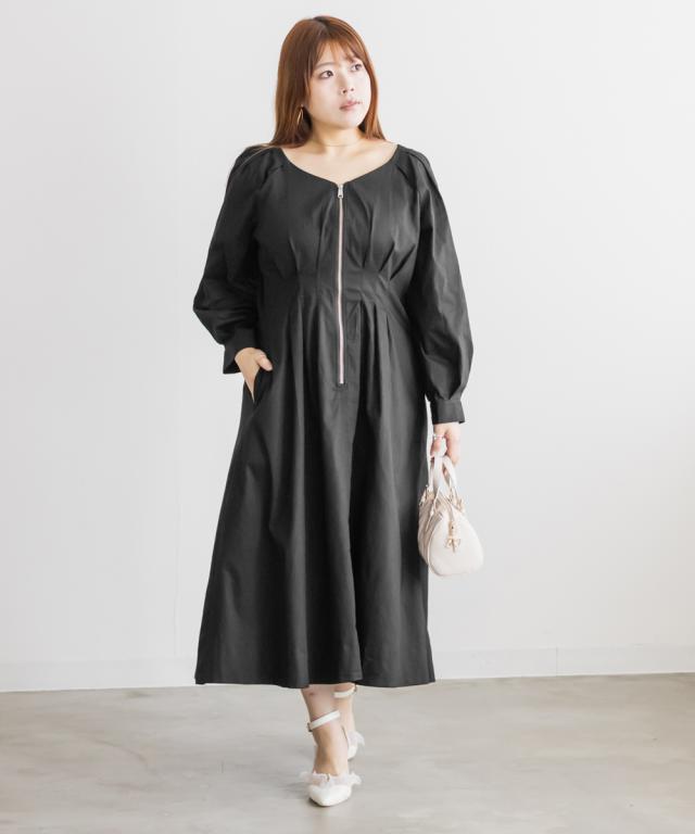 大きいサイズ/レディース/LL/3L/4L/CLETTEオリジナルフロントジップウエストタックワンピース