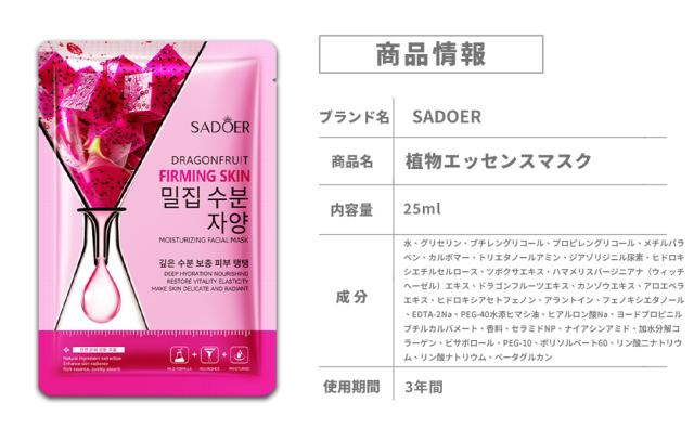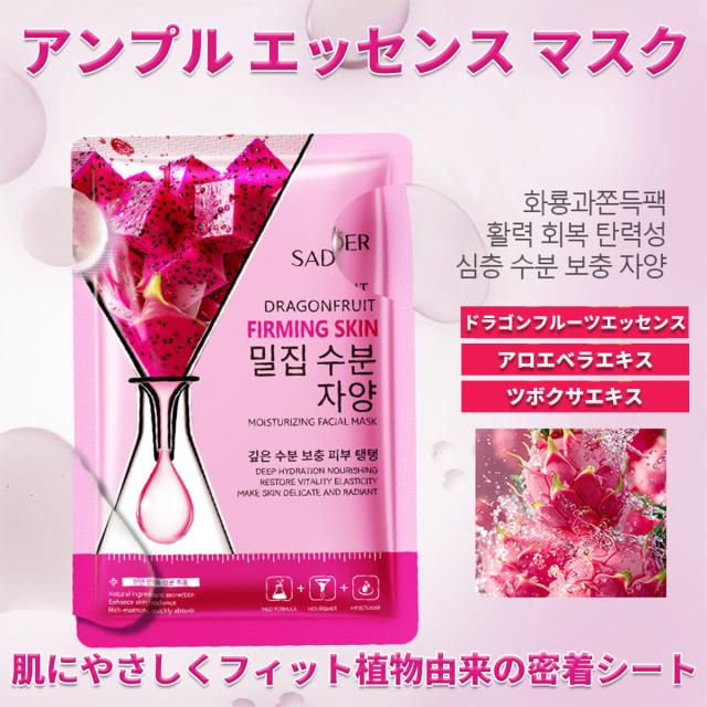 [10枚セット]天然フルーツエッセンス シートマスク 個包装、フェイスパック 大容量【ドラゴンフルーツエッセンスアンプル】活性成分配合、鎮静パック、ビタミン パック、美容パック、デイリーパック、ピタッと密着、肌荒れ パック、美容マスク