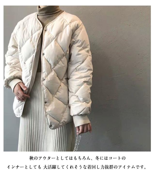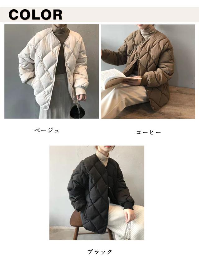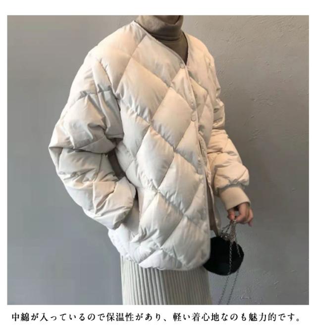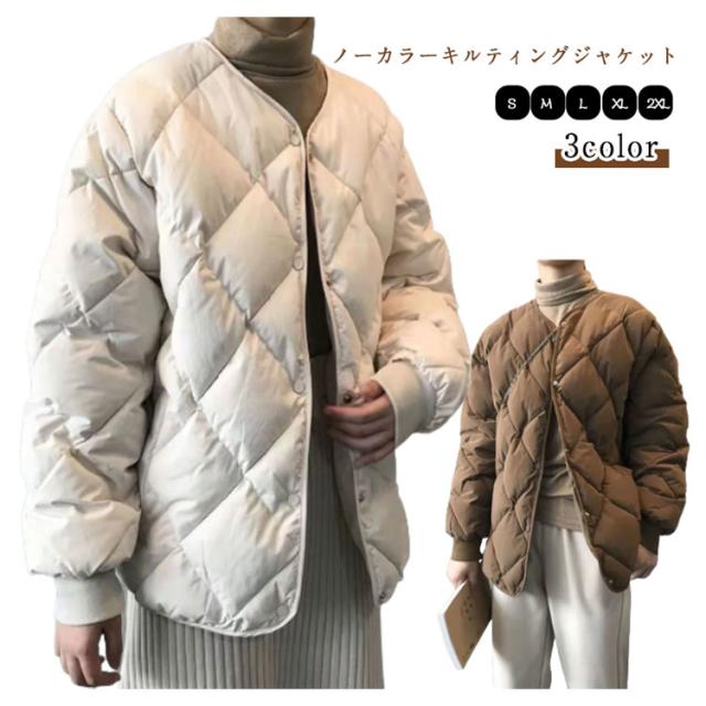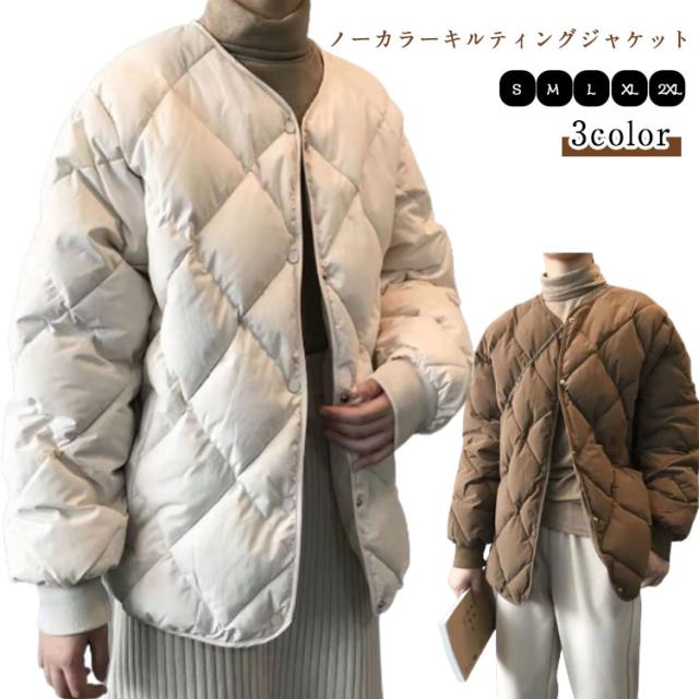 アウター レディース トレンド ミディ丈 キルティング 秋アウター 秋 ショート丈 韓国風 黒 コート ジャケット ノーカラー ゆったり アイボリー ベージュ コーヒー コート 裏地付き カジュアル お洒落 秋冬