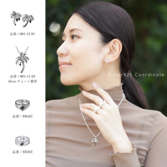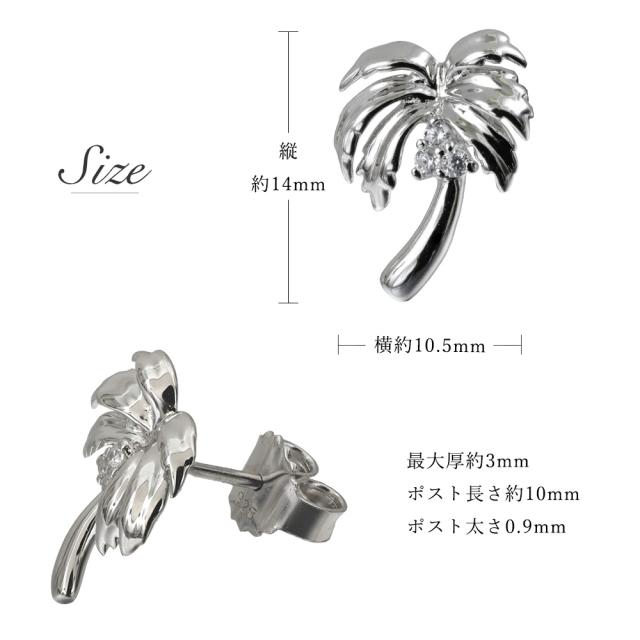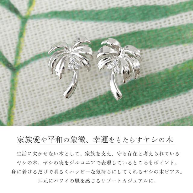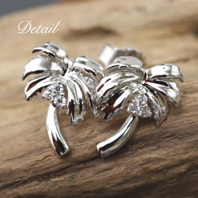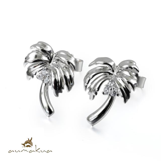 ハワイアンジュエリー ピアス ヤシの木 シルバー925 ロジウムコーティング キュービックジルコニア キャッチ パームツリー 20G aumakua 【品番:005-12-01】