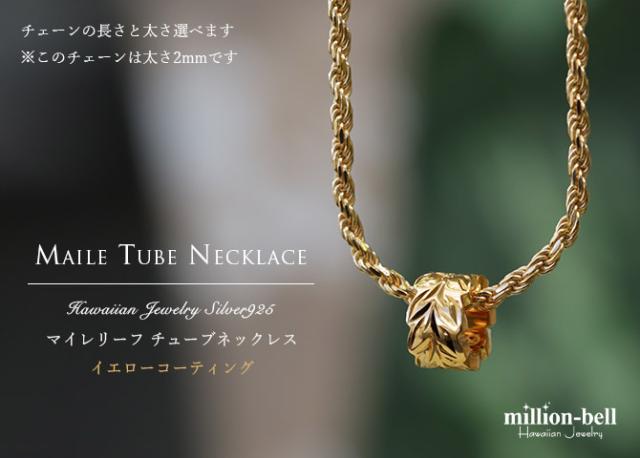 ハワイアンジュエリー ネックレス シルバー925 マイレリーフ 葉 カットアウトチューブ イエローコーティング シンプルギフト ラッピング チェーン 長さ 選べる 【品番:CG-SP3253】