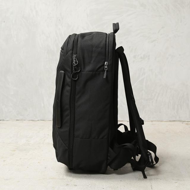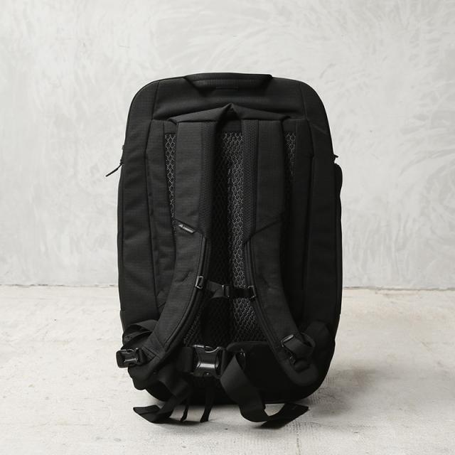 ちょっとしたお出かけから週末の小旅行などあらゆる用途に対応する、ボーダー・トラベルパックシリーズからスムーズな旅行を実現するトラベルバックパックの登場です!素材にはリサイクル600Dポリエステルリップストップ生地を採用。耐久性はもちろん、しっかりとしたハリ感があり、型崩れしにくいのがポイント。またリップストップ織とフォーム構造の組み合わせで適度なしなやかさがあるのも特徴です。C0 DWR 処理と言われる、水滴を弾く性質を持たせており、軽い雨や水弾きには耐える程度の仕様となってます。