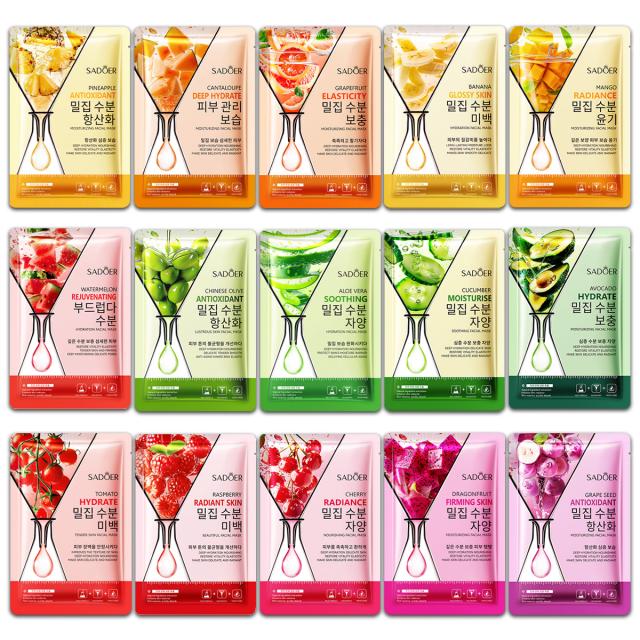 [15枚セット]天然フルーツエッセンス シートマスク 個包装、フェイスパック 大容量【売れ筋タイプ 15枚セット】活性成分配合、 鎮静パック、ビタミン パック、美容パック、デイリーパック、ピタッと密着、肌荒れ パック、美容マスク