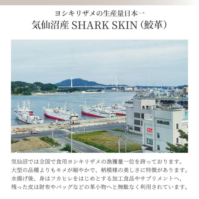 | 素材 | 外側:シャークレザー (鮫革) 内側:生地、一部シャークレザー |