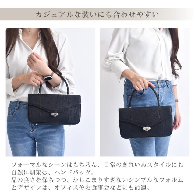 新作 ハンドバッグ レディース 日本製 シャークスキン 気仙沼産 レザー 本革 フォーマルバッグ かぶせ 鮫革 2way 金具 横型 セレモニーバッグ 軽い 小さめ サメ革 シャーク ブラック 黒色 上品 手提げ カバン 国産 冠婚葬祭 葬儀 弔事 法事 女性 婦人 人気 送料無料