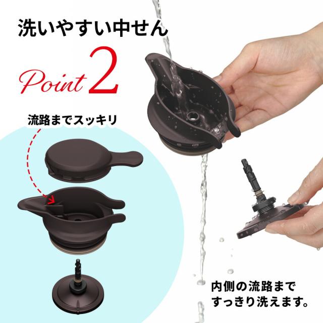 | お手入れについて | 臭いや汚れ ・カビを防ぎ、いつまでも清潔にご使用いただ<ために、ご使用後は必すお手入れをしてください。 ● ご使用後は、すぐにきれいに洗い、十分に乾燥させてください。 ● 上フタ・下フタ・バルブ・パッキンを取りはずし、きれいに洗ってください。 ● 長期間ご使用にならないときは、きれいに洗って汚れを落とし、十分に乾燥させ、高温多湿の場所をさけて保管してください。 *お手入れ方法詳細につきましては必ず付属の「取扱説明書」や サーモス公式サイト、サーモス公式Youtube等の動画「中せんの取り外し方法」「中せんの取り付け方法」をご確認ください。 |