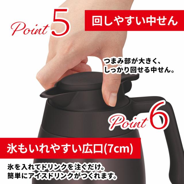 | 使用上の注意 | 次のものは絶対に入れないでください。 ● ドライアイス・炭酸飲料 *内圧が上がり、中せんが開かなくなる・飛び出す、飲みものがふき出るなどして、やけどやものを汚す原因になります。 ● お茶の葉・果肉 *注ぎ口やすきまなどにつまり、漏れてやけどやものを汚す原因になります。 ● 牛乳・乳飲料・果汁など腐敗しやすいもの *飲みものの腐敗や変質の原因になります。そのまま長く放置した場合、腐敗などによりガスが発生して内圧が上がり、中せんが開かなくなる・飛び出す、飲みものがふき出るなどして、けがやものを汚す原因になります。 |