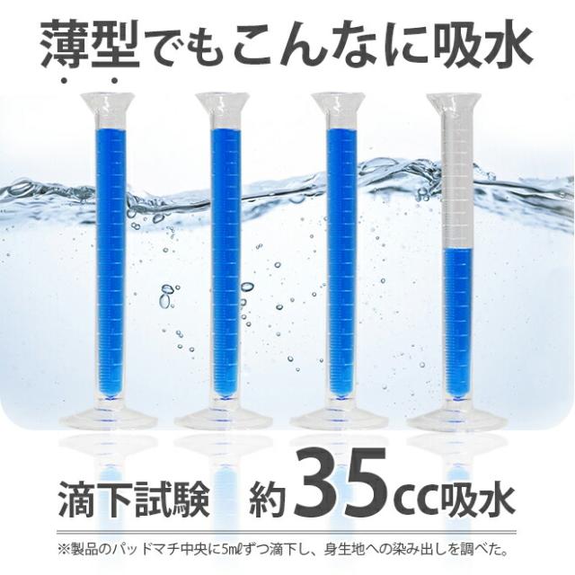 | 吸水量 | 《軽・中失禁対応》 加圧試験:約30cc吸水 滴下試験:約35cc吸水 |