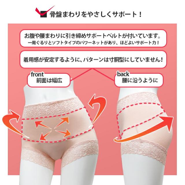素材 | 身生地:綿95%、ポリウレタン5% レース部:ナイロン、ポリウレタン パワーネット部:ポリエステル、ポリウレタン 吸水部:表側ポリエステル100% 生産国:中国 |