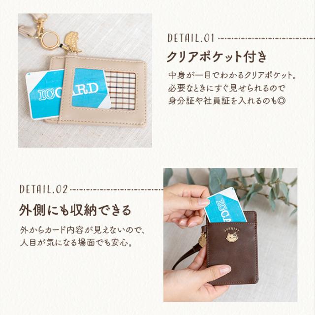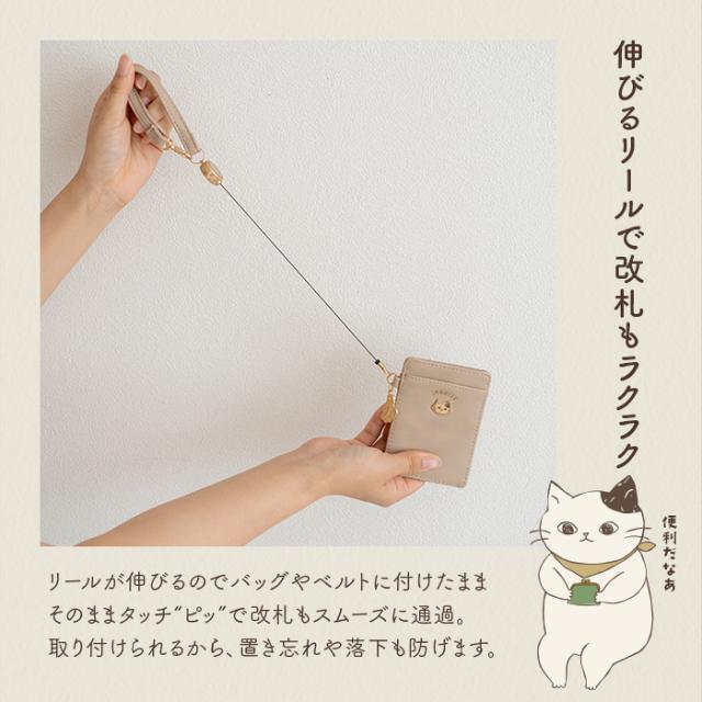 パスケース レディース 両面 リール付き ストラップ付 猫 ねこ かわいい シンプル キャラクター SNS 漫画 おしゃれ ギフト対応可能 ポスト投函 送料無料