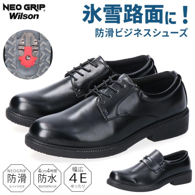 ウィルソン ビジネスシューズ メンズ 防滑 防水 滑らない 歩きやすい 疲れない 軽い 4E 幅広 甲高 ローファー 外羽根 プレーントゥ ネオグリップ ブラック 黒 通勤 営業 雨 雪 冬 雪道 紳士 フォーマル シューズ 靴 8101 8102