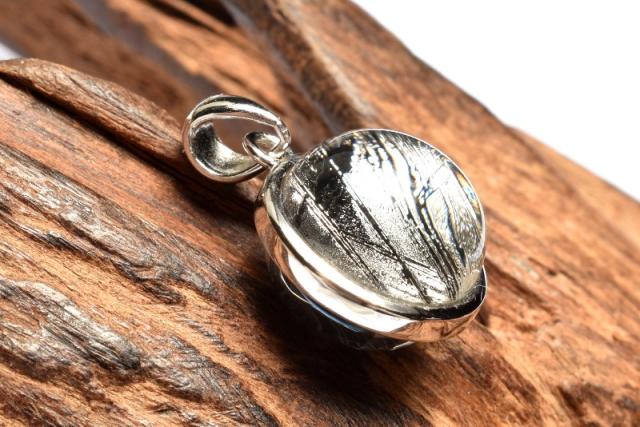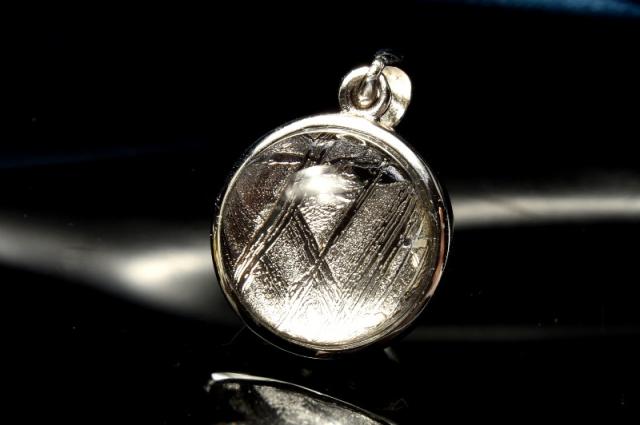スウェーデン産シルバー925◇両面 ギベオン(メテオライト隕石) 15mm シルバーコーティング コイン ペンダントトップ 1個売り _PRG2356-1