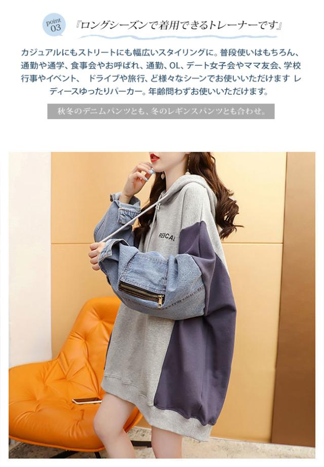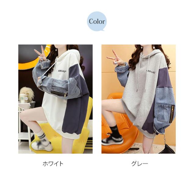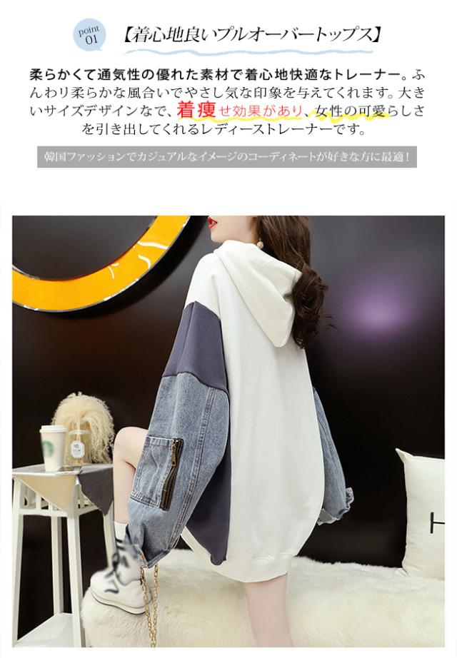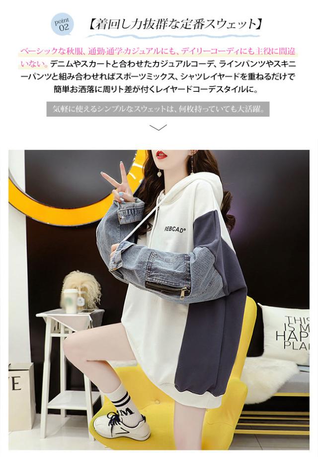 パーカー レディース スウェット トレーナー 重ね着風 プルオーバー カジュアル ゆったり 韓国ファッション 大きいサイズ