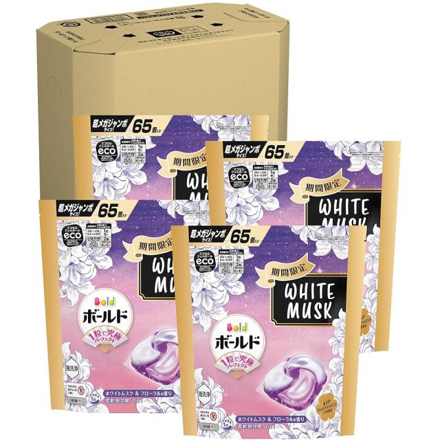 Bold ボールド 洗濯洗剤 ジェルボール 4in1 ホワイトムスク&フローラルの香り 詰め替え 65個×4袋 [ケース品]