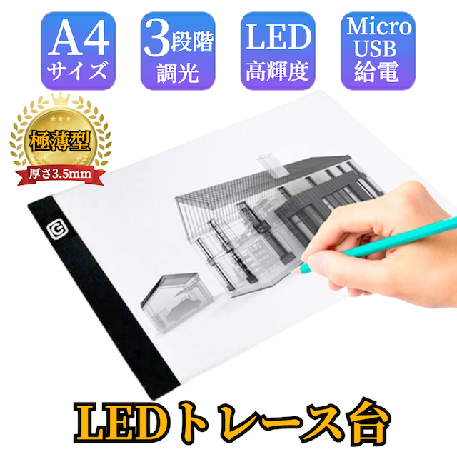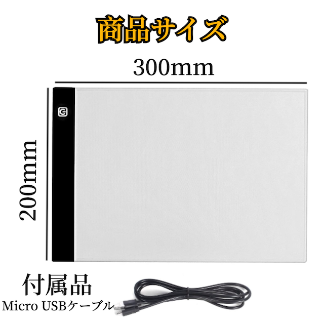 | 商品内容 | LEDトレース台 A4サイズ (Micro USB給電ケーブル付き) |