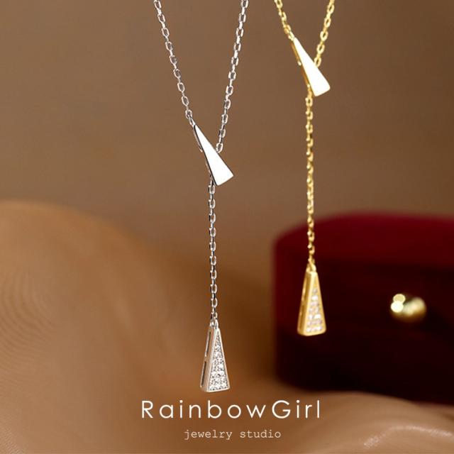 ネックレス レディース シンプル ラリエット CZダイヤ 三角 プラチナ仕上げ ゴールド 女性 誕生日プレゼント 人気 クリスマス