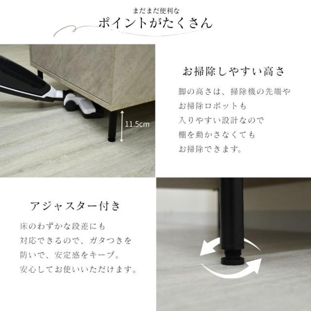 ・脚の高さは、お掃除ロボットが入る高さで設計しているため、お掃除の際に動かさなくて大丈夫です。