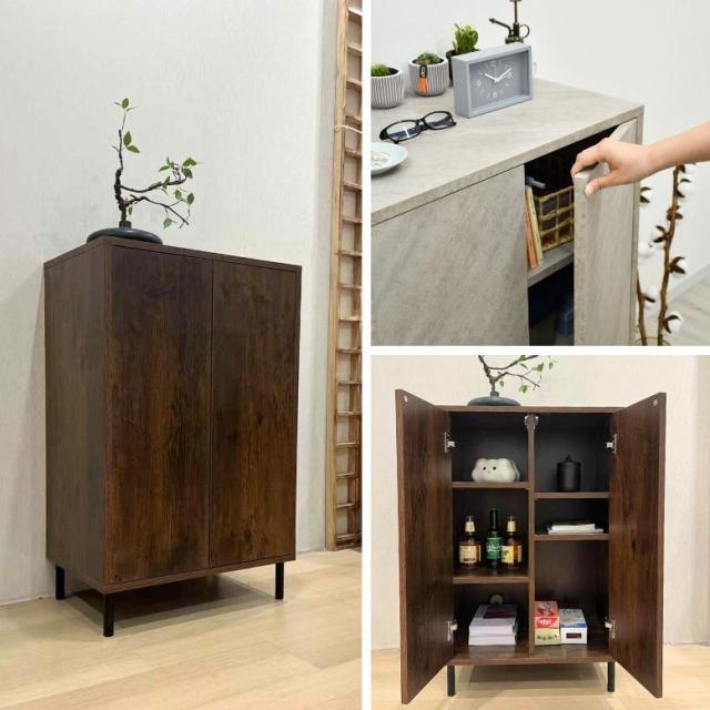 キャビネット サイドボード 棚 ラック チェスト 扉付き 可動棚 木目調 ウッド調 サイドキャビネット