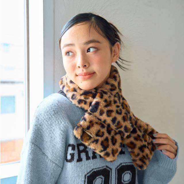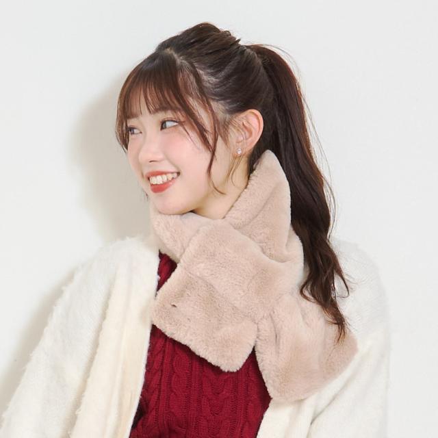 ■首元をやさしく包み込むフェイクファーのマフラーです。