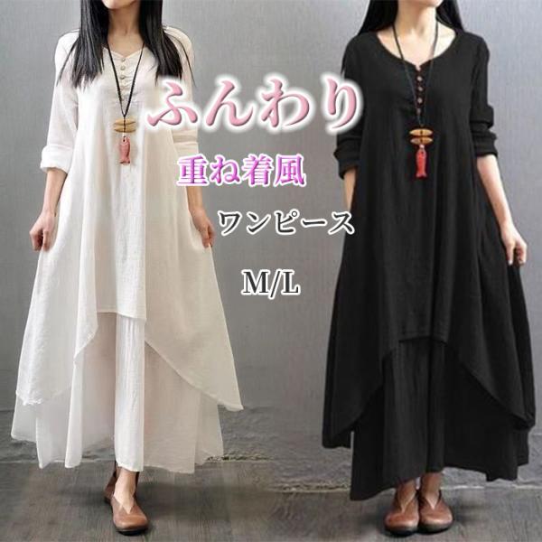 ワンピース レディース 秋 ロング 30代 40代 50代 コットン リネン 長袖 カジュアル ナチュラル エスニック