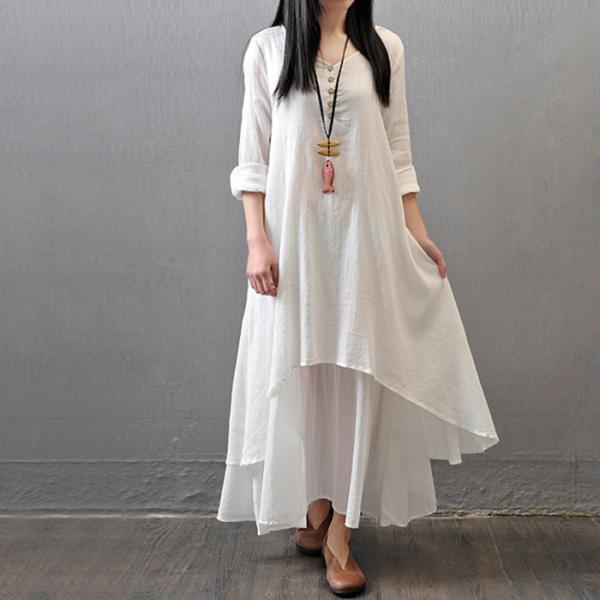 ワンピース リネン レディース 春 秋 きれいめ 綿麻 リネン混 Vネック ロング マキシ ワンピ リネンワンピース 体型カバーふんわり 軽い 柔らか ナチュラル ワンピ 長袖 大人 可愛い ロングシャツ