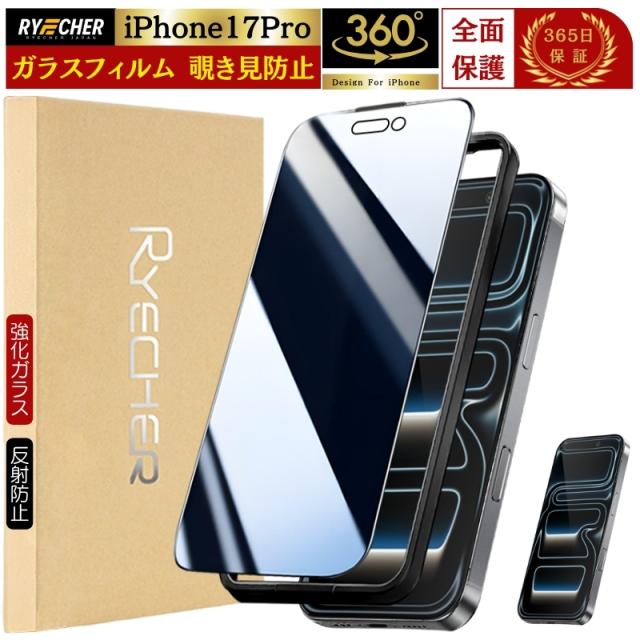 【360度・除き見防止フィルム】 iPhone 17Pro ガラスフィルム 覗き見防止 iPhone 17 Pro 保護フィルム 全面保護 iPhone 17 Pro フィルム iPhone 17Pro 保護 フィルム 強化ガラス のぞき見防止 全面 アイフォン17プロ RYECHER iPhone 液晶保護フィルム