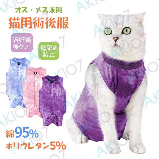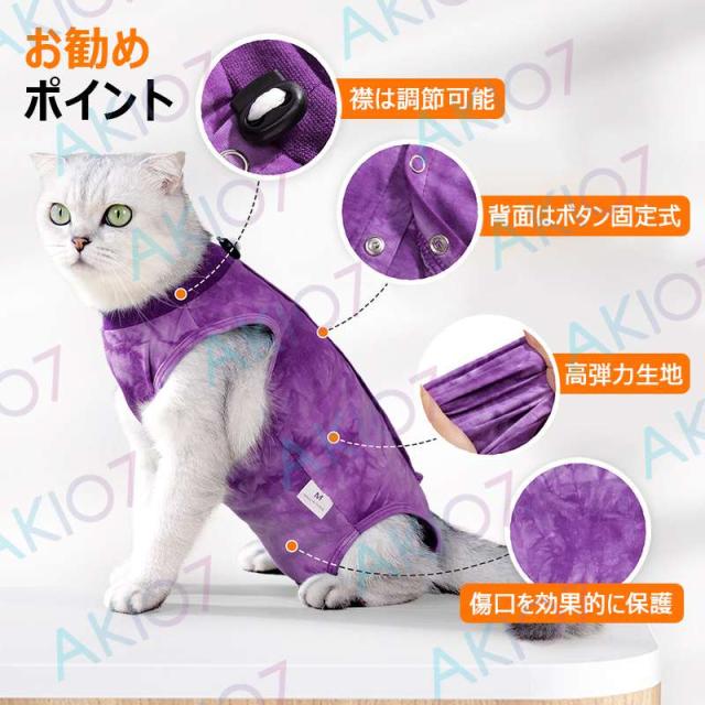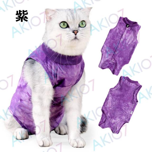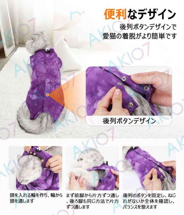 【男女兼用・後列ボタンデザイン】2枚入り 猫用 術後服 猫避妊術後ケア ペット術後服 快適 保護服 エリザベスカラー オス/メス兼用 傷口を効果的に保護 術後 ウェア 綿 傷舐め防止 術後用