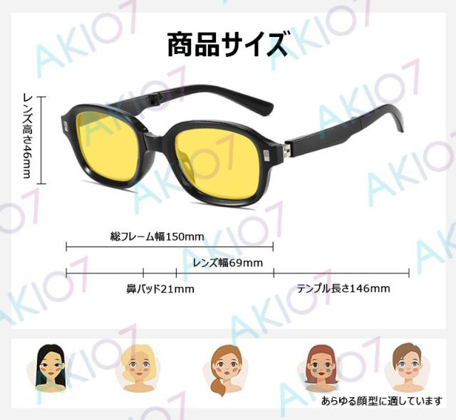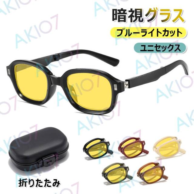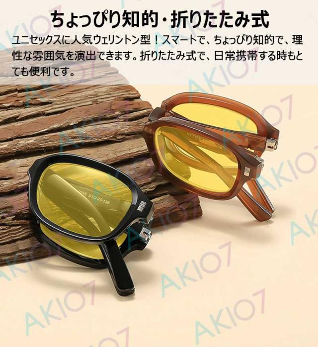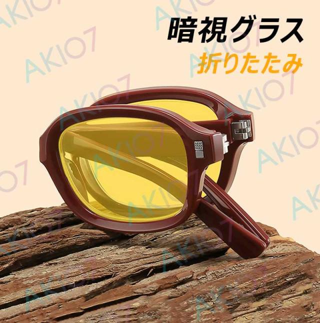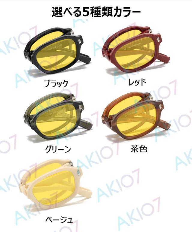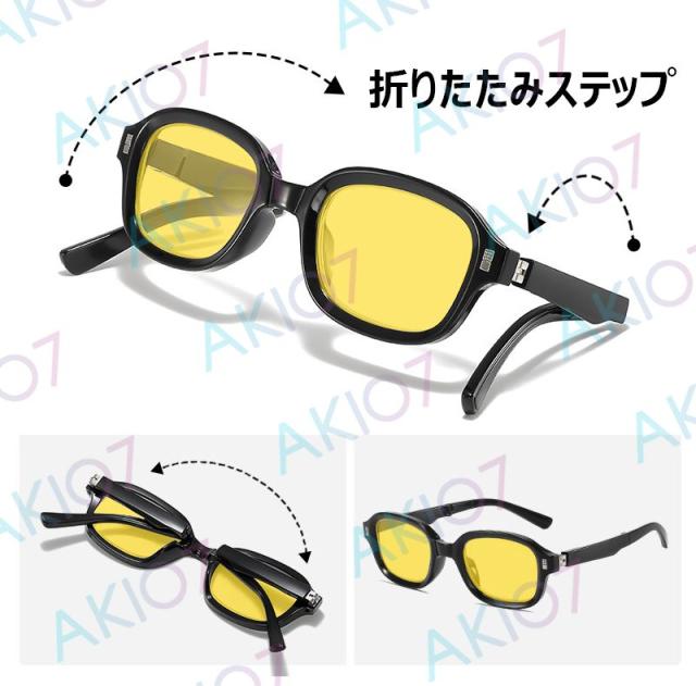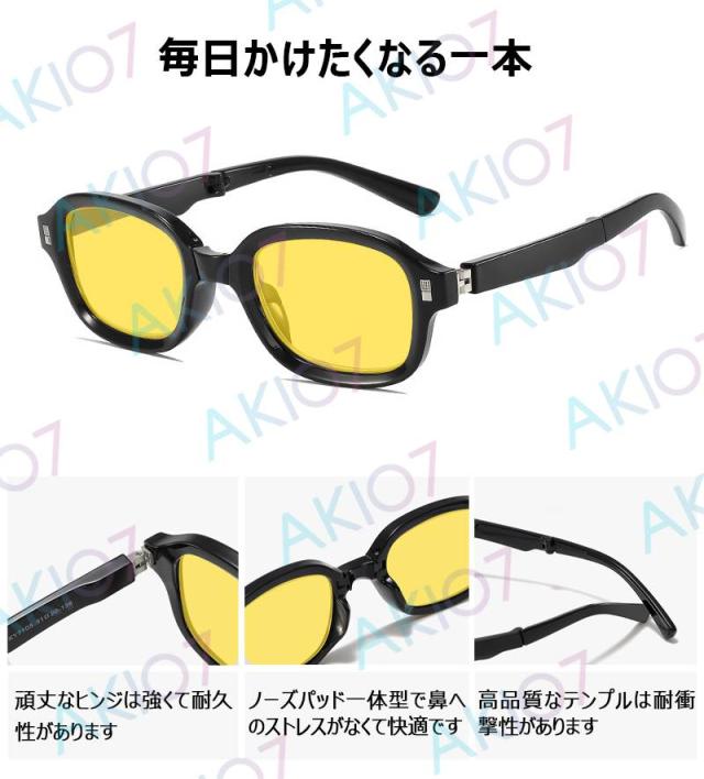 折りたたみ 夜間サングラス 運転サングラス ナイトグラス 暗視メガネ 夜間運転用サングラス 昼夜兼用 超軽量 紫外線カット 眩しさ軽減 UV400 スポーツ/ドライブ/運転釣り/ゴルフ/曇り/野球適用