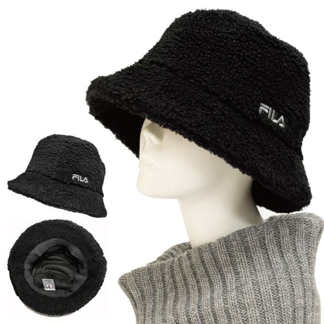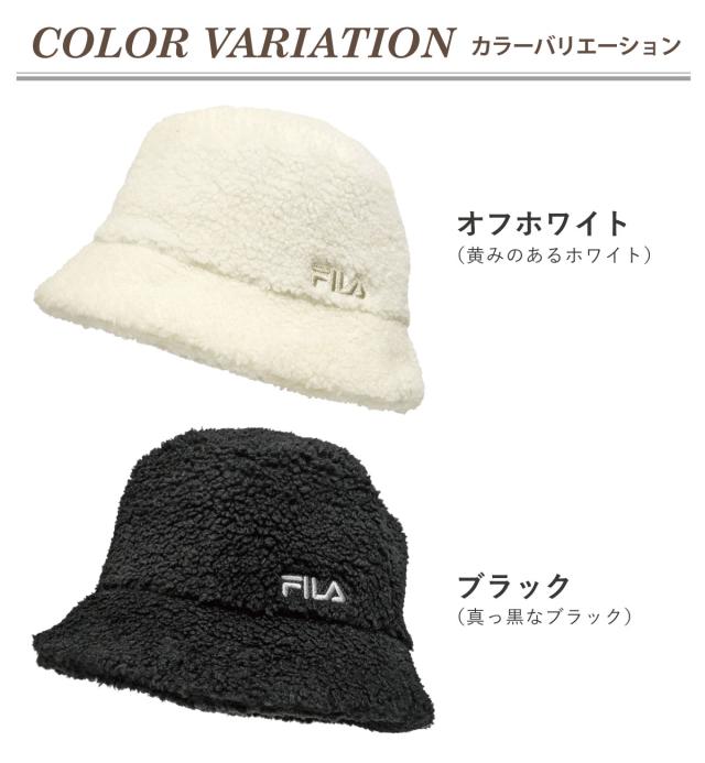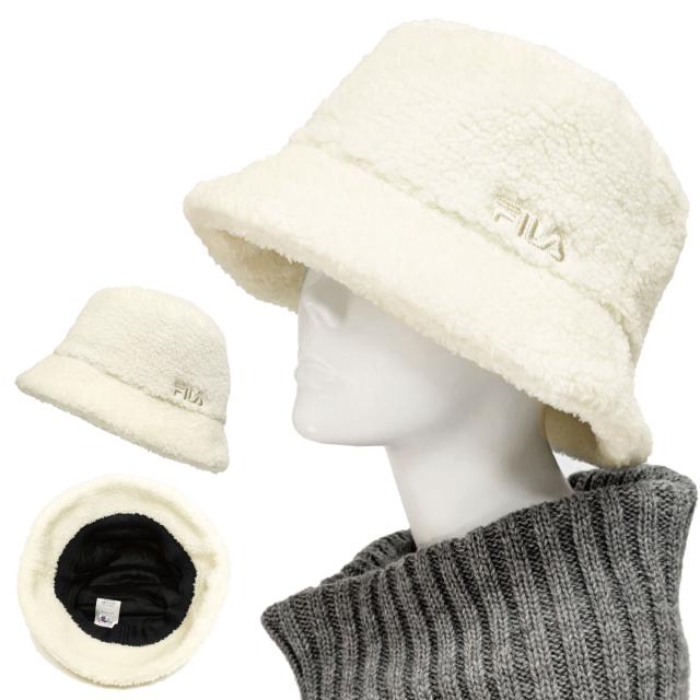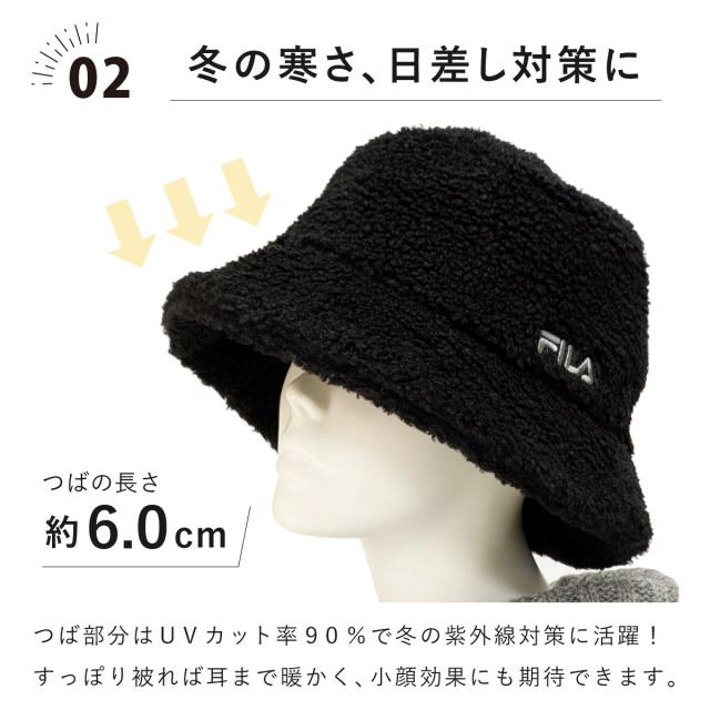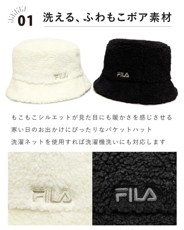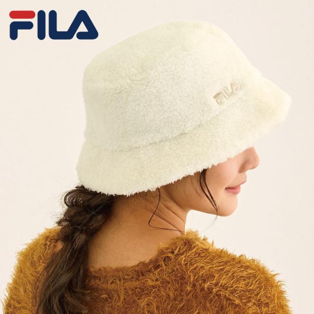 FILA ボア バケットハット 耳まで暖かい もこもこ 洗える サイドロゴ 秋冬 つば UV90%カット あったかファー 55cm-58cm 洗濯機対応 fi-254-013602 正規取扱 帽子 レディース 秋冬 メンズ 防寒 男女兼用 小顔 プレゼント 即納メール便送料無料