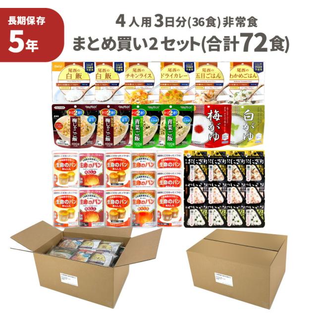 非常食セット 5年保存 まとめ買い 2セット ( 72食 ) 4人用 3日分 36食 2箱 団体向け 保存食 防災食 非常用食品 ケース販売 ご飯 お米 PEACEUP