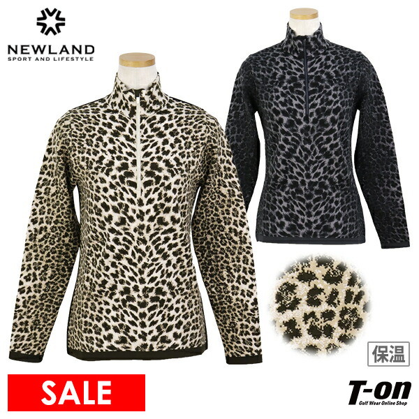 セーター ニットポロ 長袖 ハイネック ハーフジップアップ イタリア製 撥水 保温 温度調節機能素材 レオパード柄 アニマル柄 総柄