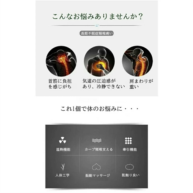 ・温熱と振動のダブル機能で、こわばった首や肩を心地よくケアします。
