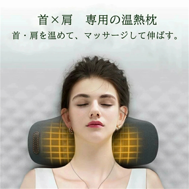 マッサージ枕 マッサージピロー 温熱 振動 首 肩 マッサージャー枕 マッサージ機 給電式 人間工学 低反発枕 マッサージ器具 マッサージクッション 肩こり あったか まくら マッサージャー おすすめ プレゼント