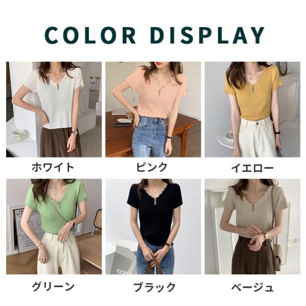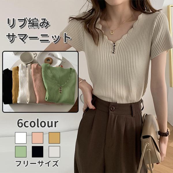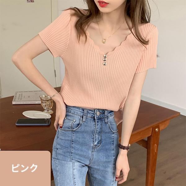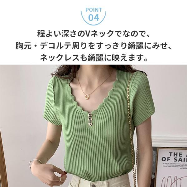 サマーニット レディース tシャツ 半袖 vネック おしゃれ 夏 30代 40代 50代 トップス ニット 春夏 春 夏 夏服 お洒落 オシャレ かわいい 大人カジュアル デート服 合コン 女子会 フィミニン ナチュラル