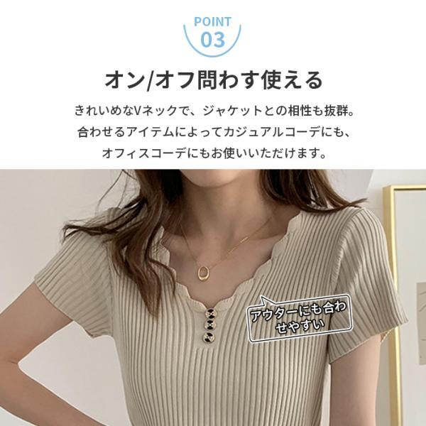 サマーニット 半袖 レディース tシャツ vネック おしゃれ 夏 30代 40代 50代 通勤 通学オフィス フォーマル