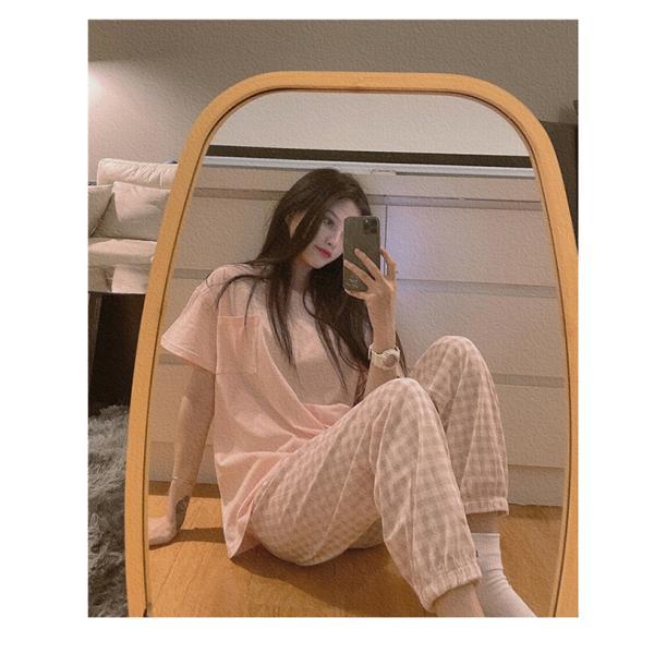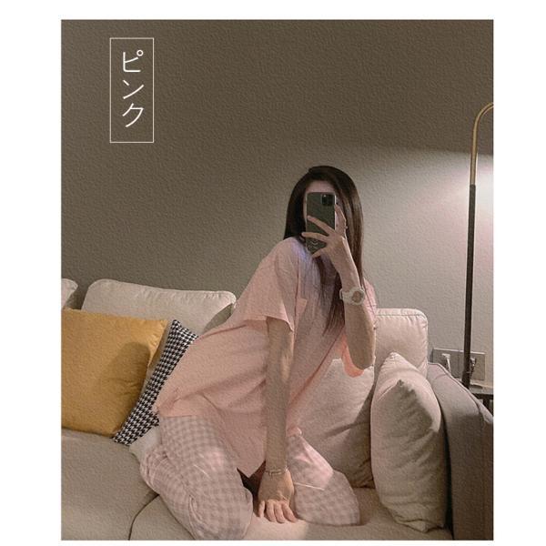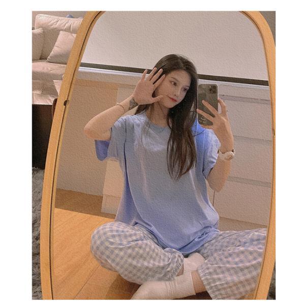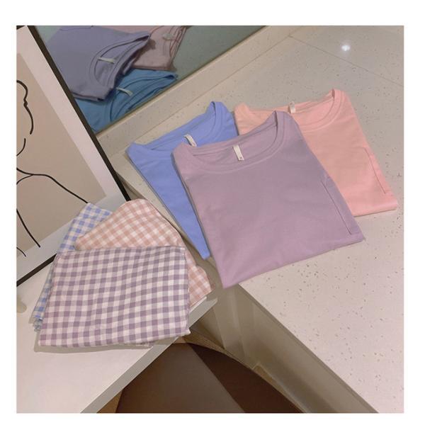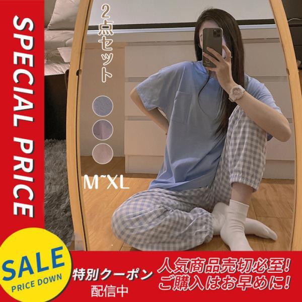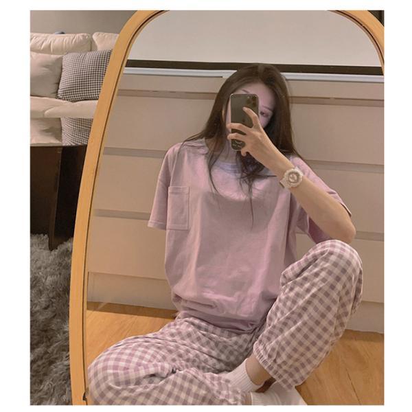 ルームウェア レディース 上下 夏 半袖 パジャマ 無地 tシャツ パンツ セットアップ 可愛い お洒落 春 秋 30代 40代 20代 チェック柄
