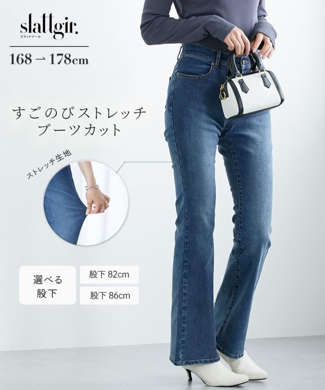 高身長 すごのびストレッチデニムブーツカットパンツ(股下82cm)丈長め・トールサイズ