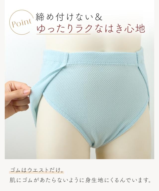 肌にゴムがあたらないように身生地にゴムをくるんでいます。