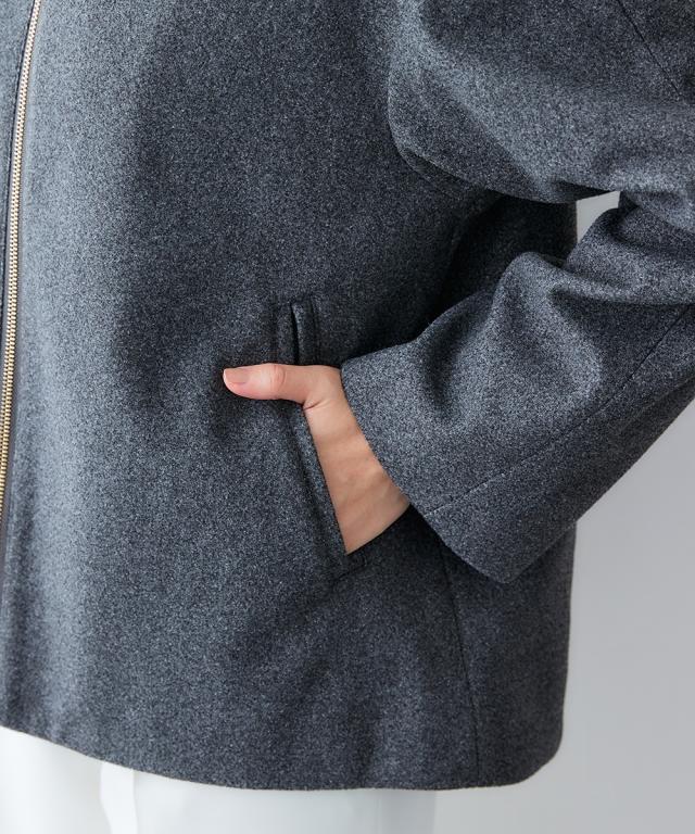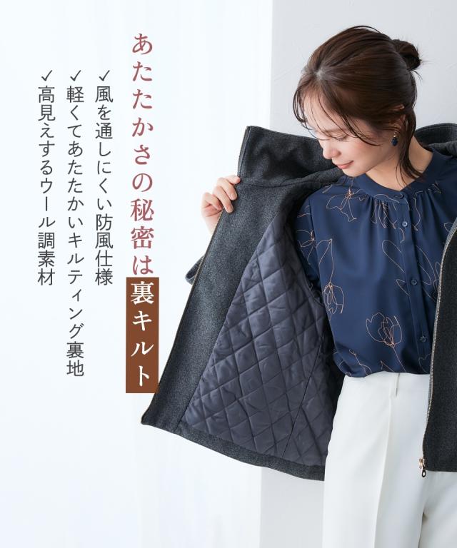 ・ウール調の上品な風合いに、裏地はあたたかな中綿キルト仕様