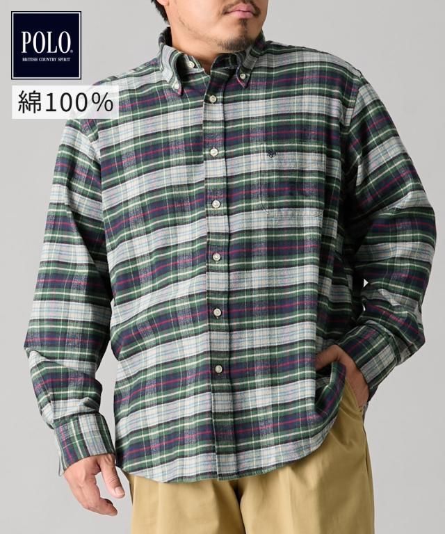 綿100%起毛ボタンダウンチェックシャツ POLO BCS【大きいサイズ】