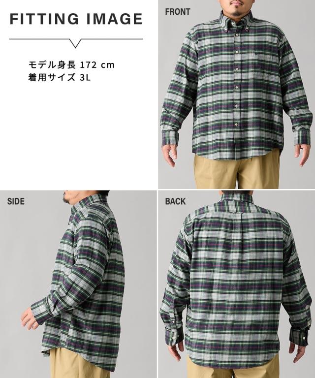 シャツ カジュアル メンズ 綿100% 起毛ボタンダウンチェック POLO BCS 秋 冬 大きいサイズ | 3L/4L/5L | ニッセン nissen